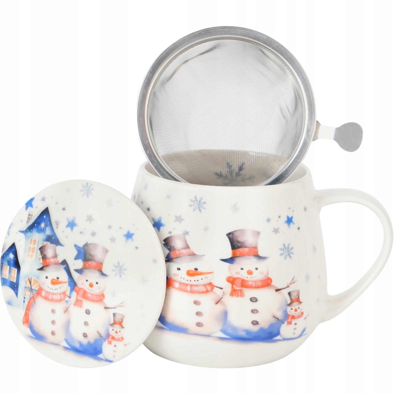 Kubek baryłka 430ml z Zaparzaczem do HERBATY ZIÓŁ na Święta SNOWMAN BAŁWAN