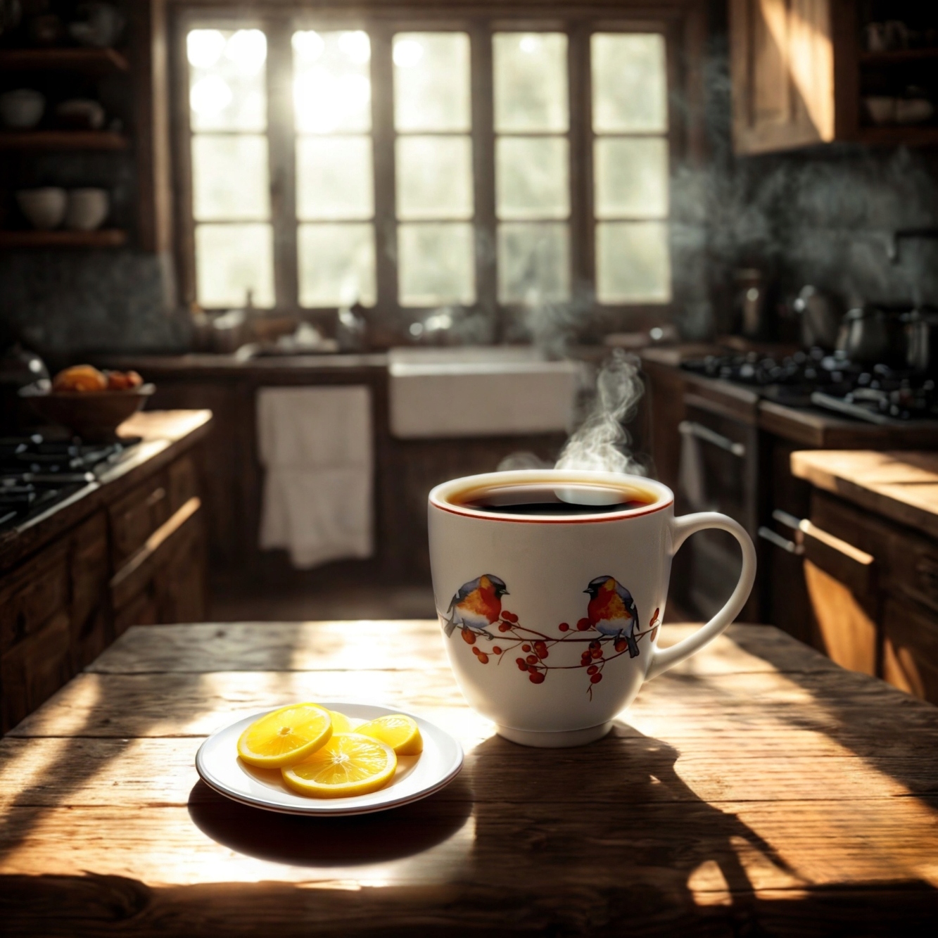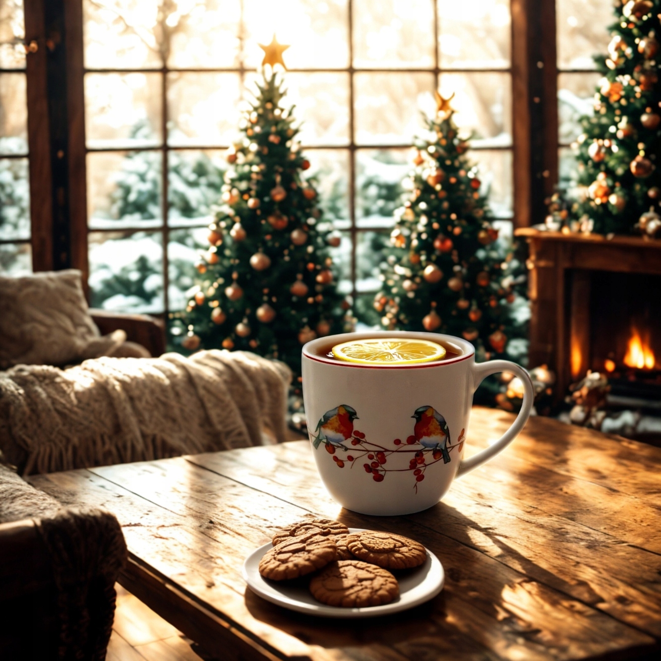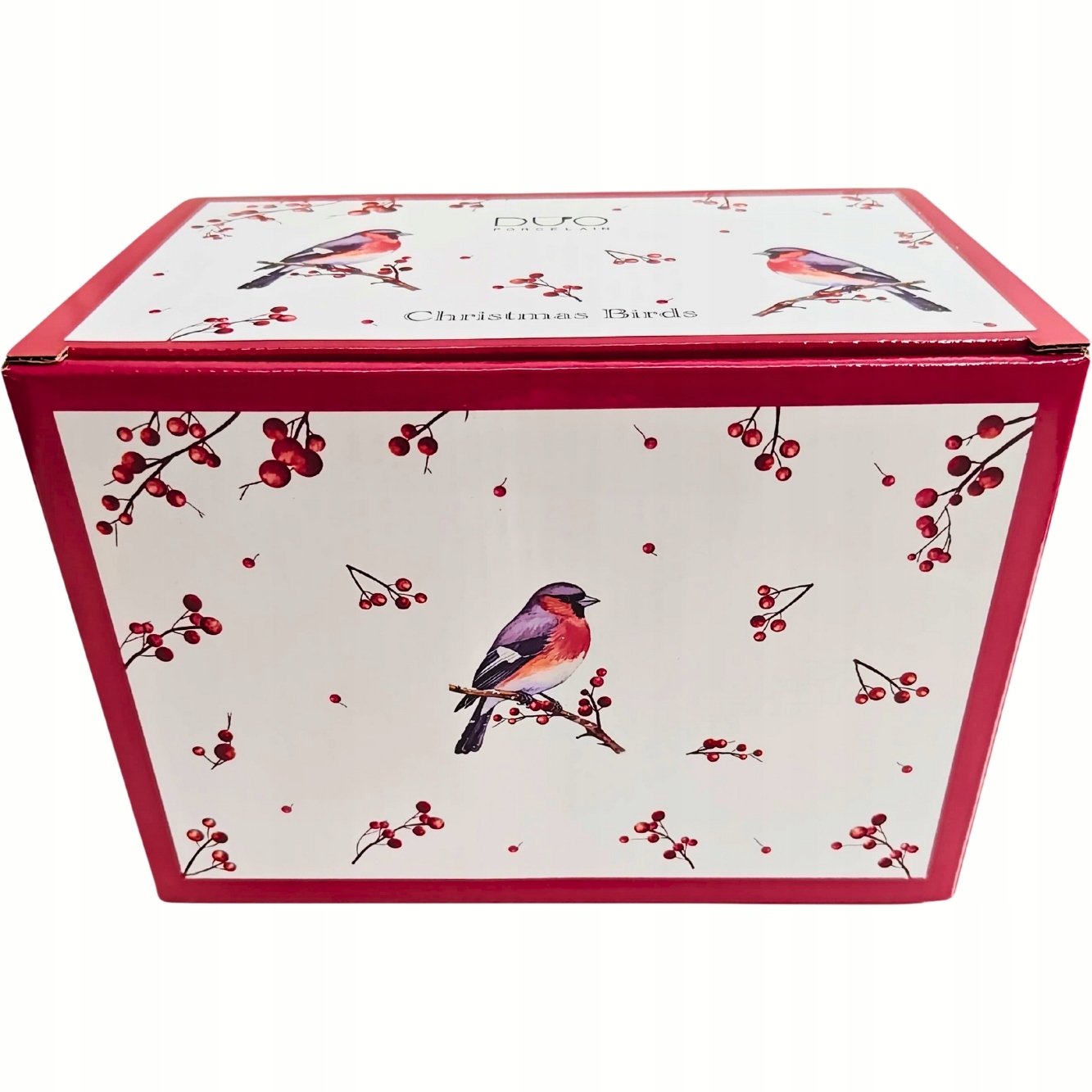 • Elegancki, porcelanowy kubek zdobiony motywem kolorowego ptaszka siedzącego na gałązce z mnóstwem drobnych owoców - kompozycja podkreśla świąteczny nastrój i tworzy harmonijną całość przyciągającą wzrok